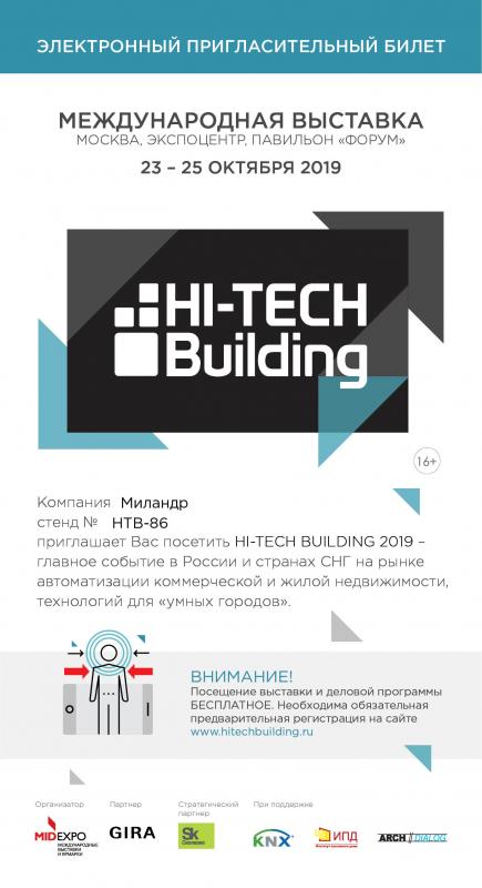 Международная выставка HI-TECH Building является единственной в России и СНГ профессиональной площадкой рынка автоматизации, на которой ежегодно встречаются компании – производители, интеграторы, дистрибьюторы и заказчики для обмена опытом и приобретения полезных знаний.