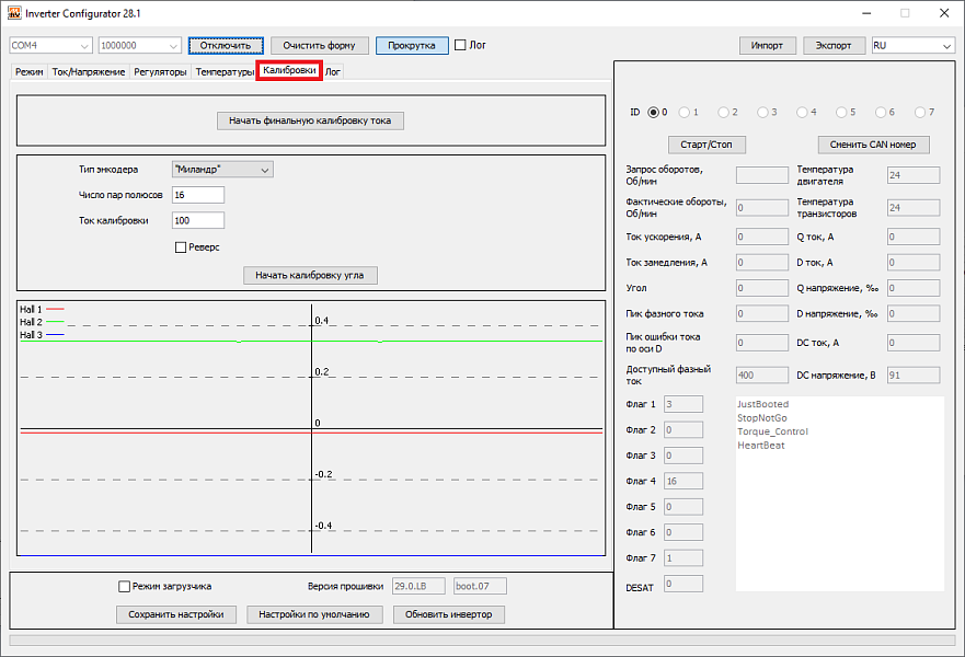 Для тяговых инверторов в ПО Configurator_Inverter добавлено графическое отображение состояния холлов тяговых электродвигателей .